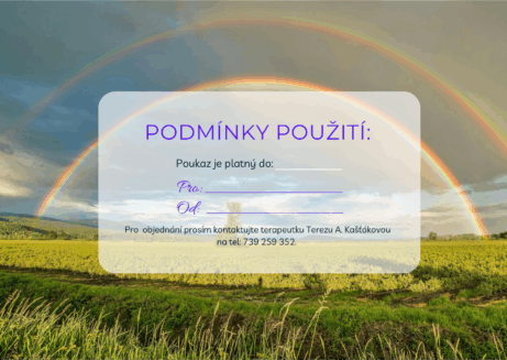 Dárkové poukazy si zde můžete sami stáhnout a vytisknout, nebo mi napsat na tel: 739 259 352 a říct si o vytištěné. Moc ráda vám je osobně předám či zašlu.